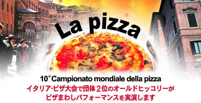 イタリアで毎年開催されている「ピッツァ選手権大会」。ヒッコリーチームは昨年に続いて二度目の出場です。今大会には、イタリア全土のほかアメリカ、スペインなどのピザ職人が参加し、日本からも今年は数チームの参加がありました。
