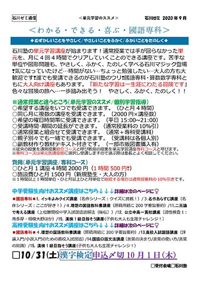 PDFで表示(2024.夏)国語の読解力・記述力をつける石川塾/漢検・数検が石川塾で受検できます