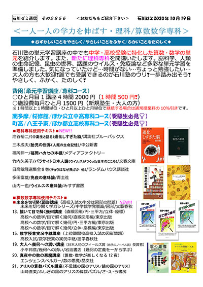 PDFで表示2021年/11月/石川ゼミ通信/ミツキ先生とヒロミ先生の二人が小中学生の理科社会を教えます