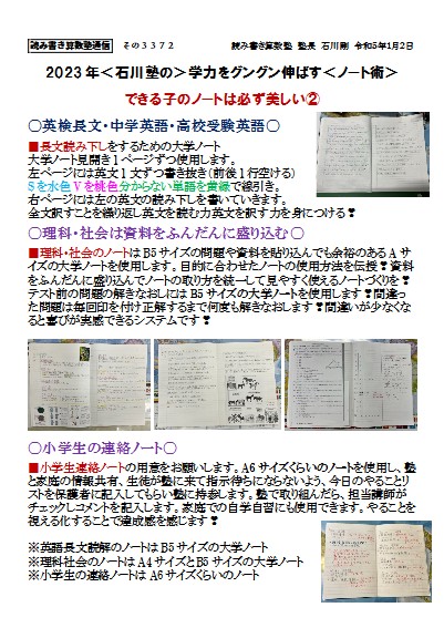 PDFで表示石川ゼミ通信/<石川塾のノート術>できる子のノートは美しい①~④無料体験学習実施中(国語・算数)/tel:042-710-5768(気軽にどうぞ)